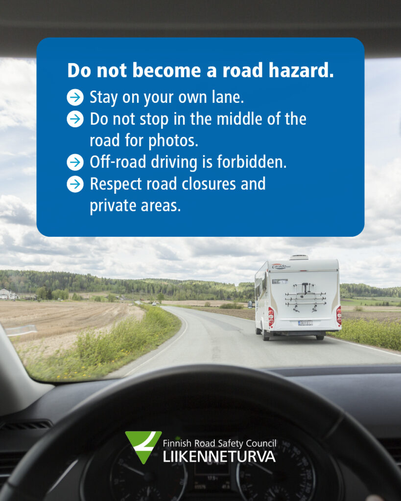 When visiting Finland, it is vital to know and respect the road rules. Harsh conditions can be a safety risk especially in winter. These short guides explain some of the key points a visitor should know when hitting the road in Finland. Please take note that they are not a comprehensive list of all the current legislation and regulations. The goal is to prevent accidents in travel and tourism and make sure visitors stay safe.
